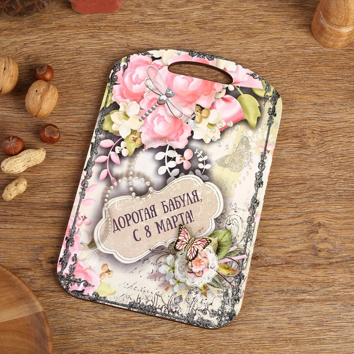 Доска разделочная сувенирная Дарим Красиво «Дорогая бабуля, с 8 марта», 27×18 см, дерево, разноцветная