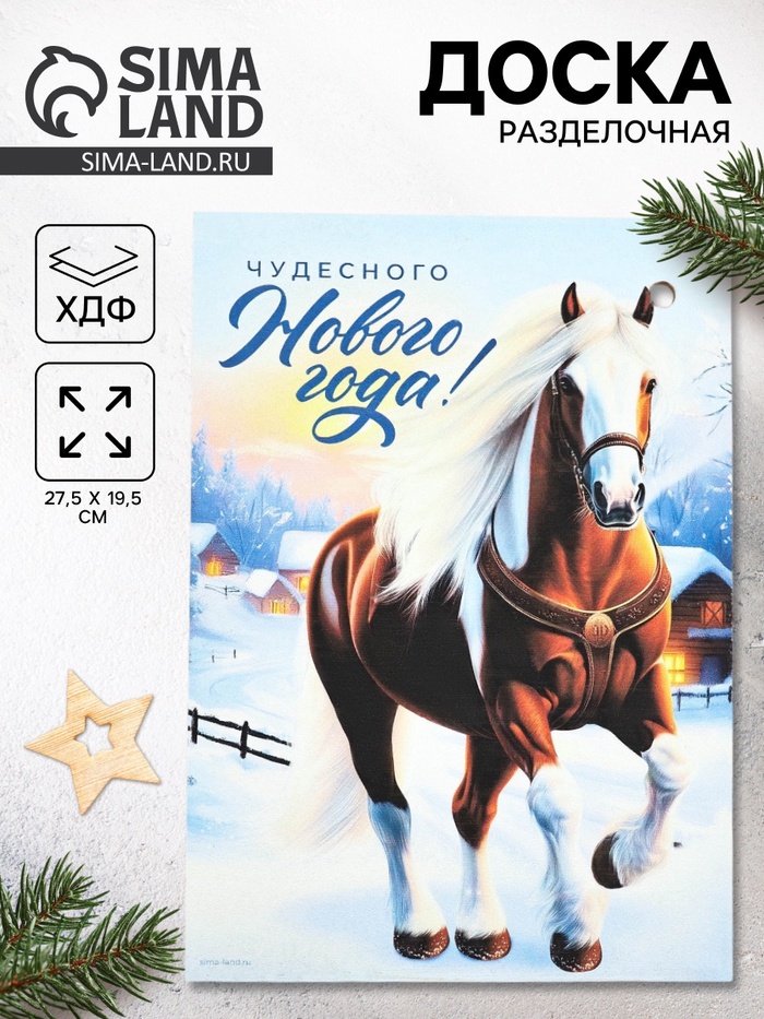Доска разделочная новогодняя «Чудесного Нового года!», 27.5×19.5 см