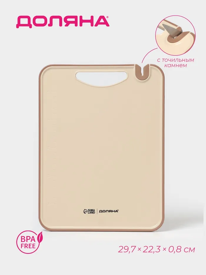 Доска разделочная с точильным камнем Доляна, 29.7×22.3×0.8 см, пластик, бежевая