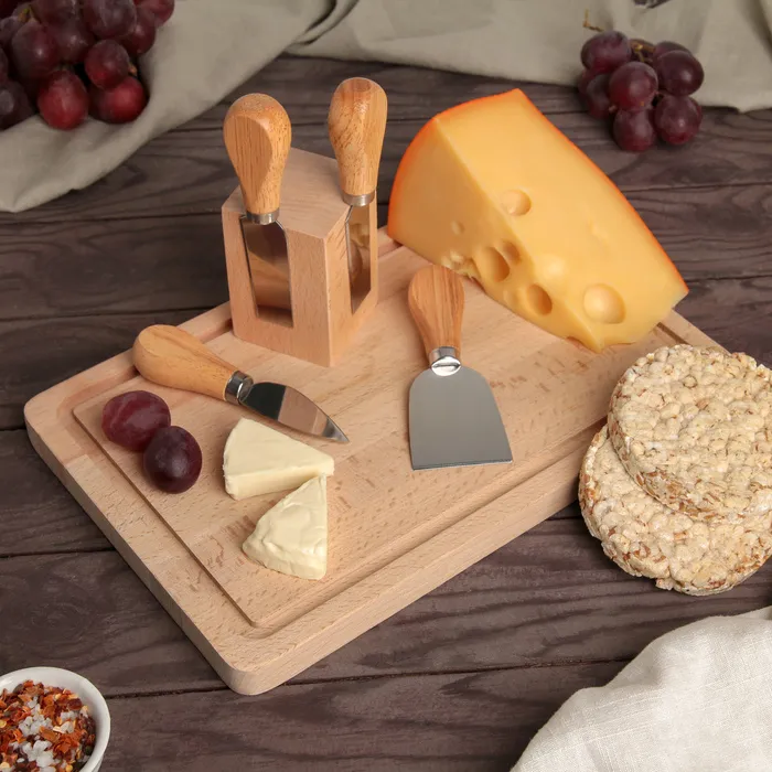 Набор ножей для подачи сыра, 4 шт., на магнитной подставке, бразильская гевея, 8.5×8.5×16.5 см, бежевый