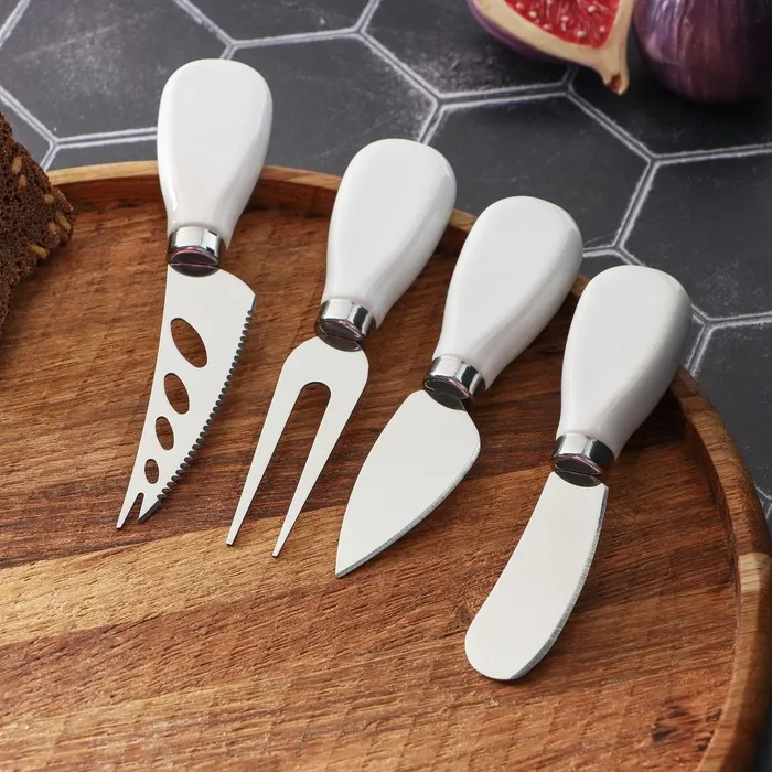 Ножи для сыра Magistro Celt, 4 предмета: нож 3 шт., вилка для сыра 1 шт., керамическая ручка, белые