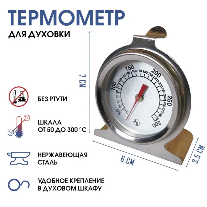 Термометр, градусник кулинарный, кух "Для духовки", от 50 до 300°С, 7 х 6 х 3.5 см