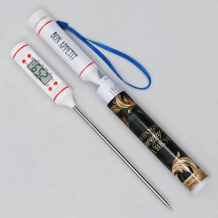 Термометр кухонный электронный, на батарейках, с щупом, в чехле