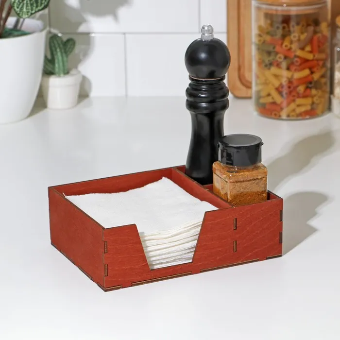 Салфетница деревянная Доляна, с отделениями для специй, 18,5×13,5×6 см, цвет мокко