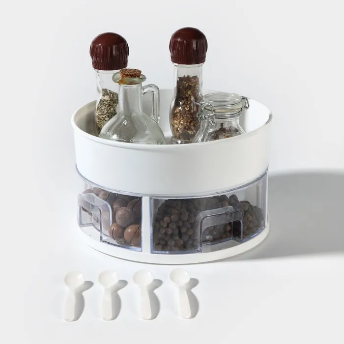 Органайзер для специй вращающийся, 4 ячейки, 2-х ярусный, 23×13.5 см, белый