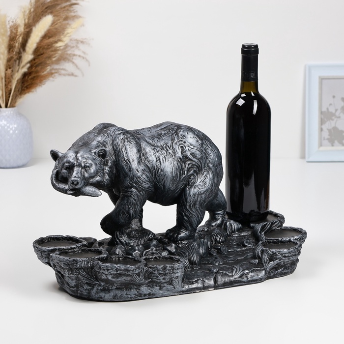 Подставка для бутылки «Медведь», 45×23×25 см, серебро