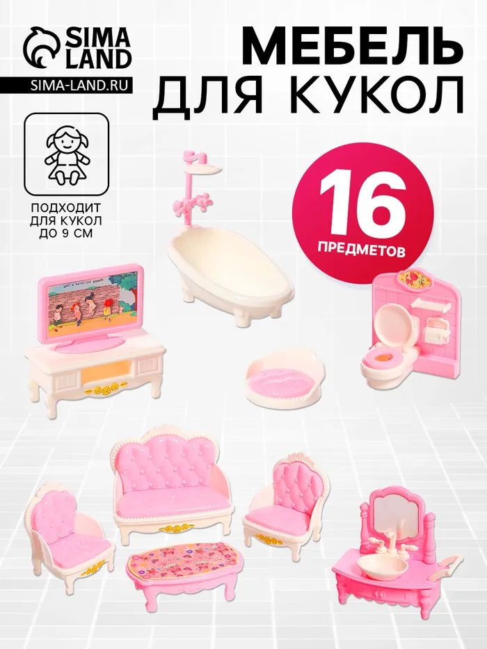 Мебель для кукол «Милый Дом», набор 14 предметов