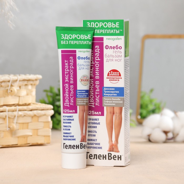 Гель-бальзам для ног «Вен Флебогель» с двойным экстрактом листьев винограда, 125 мл