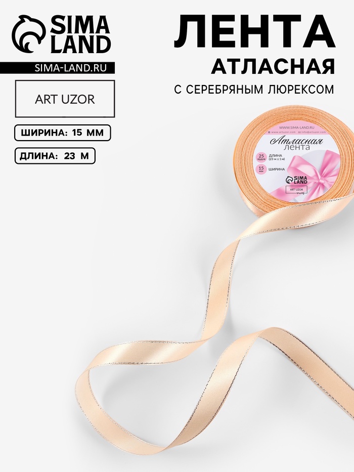 Лента атласная, с серебряным люрексом, 15 мм, 23±1 м, светло-бежевая №007