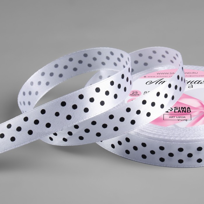 Лента атласная «Горошек», 15 мм, 23±1 м, белая №001