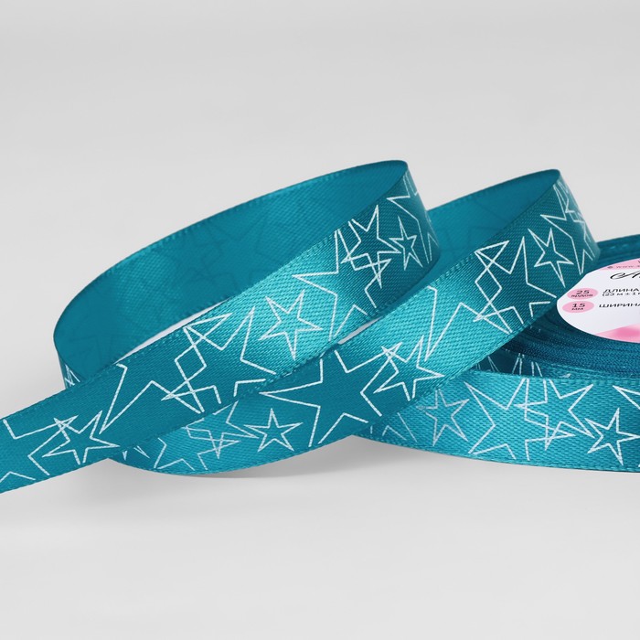 Лента атласная «Звёзды», 15 мм, 23±1 м, голубая №047