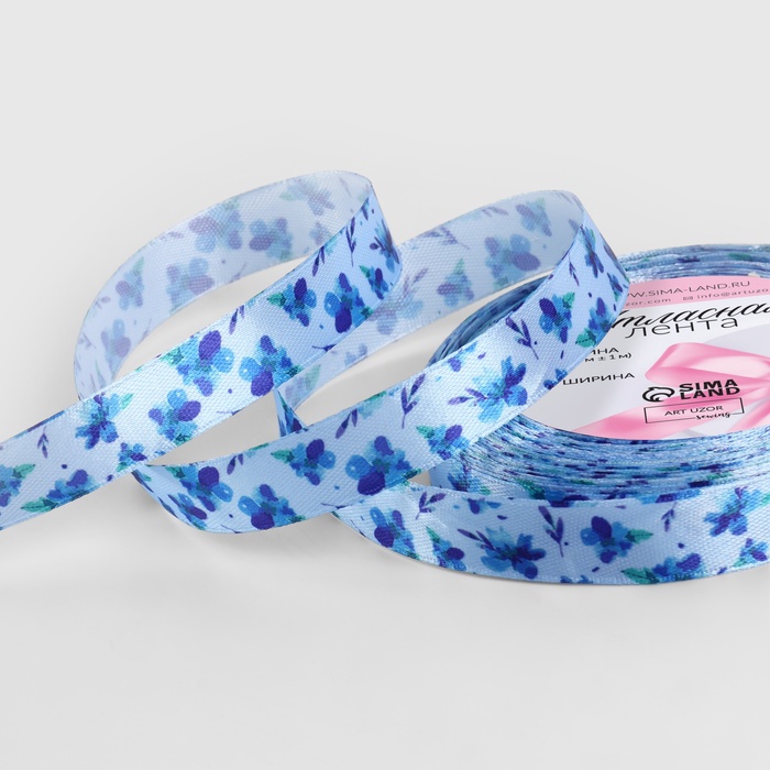 Лента атласная «Незабудки», 15 мм, 23±1 м, голубая