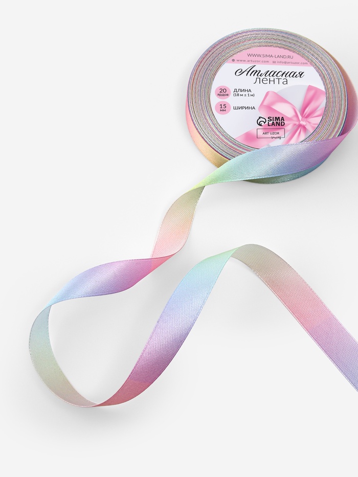 Лента атласная «Радуга», 15 мм × 18 ± 1 м, разноцветная