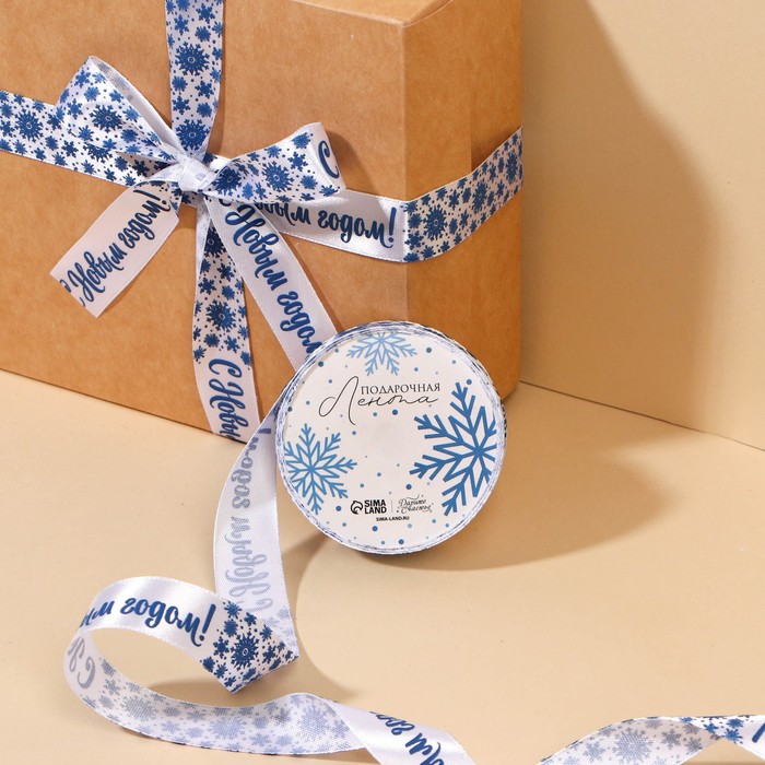 Лента атласная «С Новым годом», 15 мм, 23±1 м, синяя