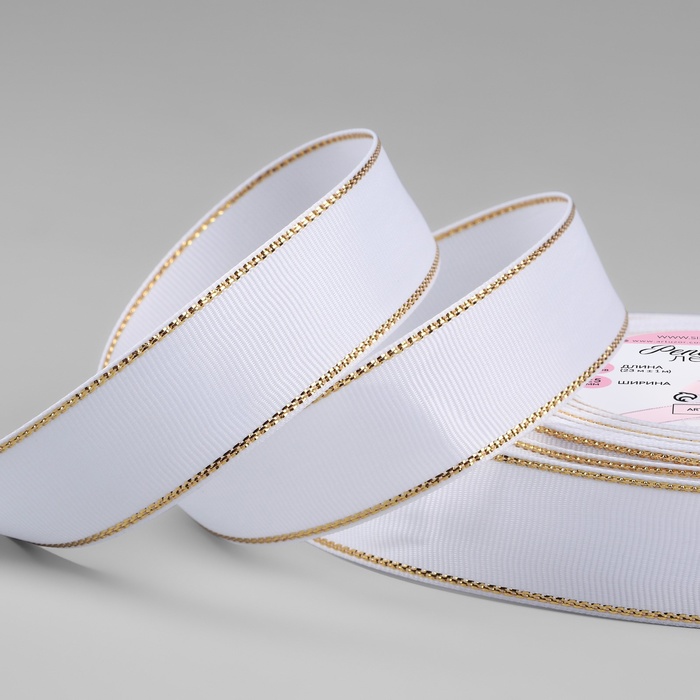 Лента репсовая, с золотым люрексом, 25 мм, 23±1 м, белая №001