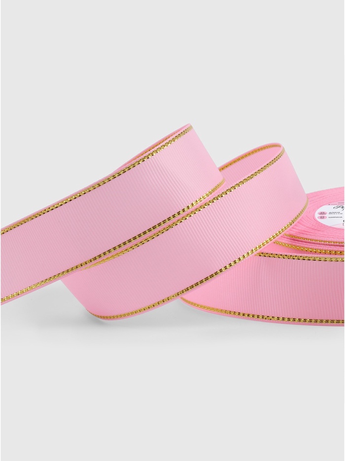 Лента репсовая, с золотым люрексом, 25 мм, 23±1 м, розовая №004