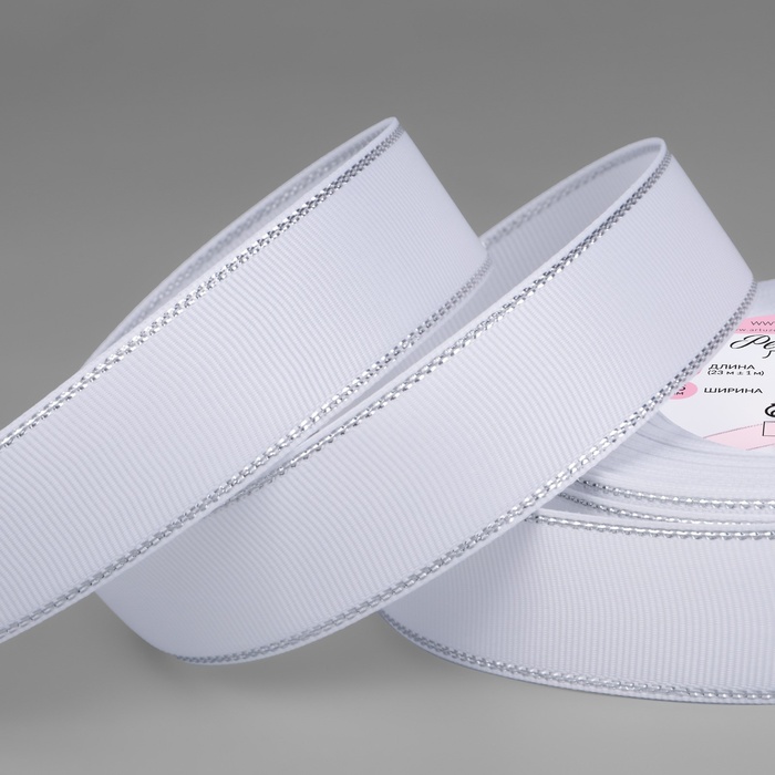 Лента репсовая, с серебряным люрексом, 25 мм, 23±1 м, белая №001