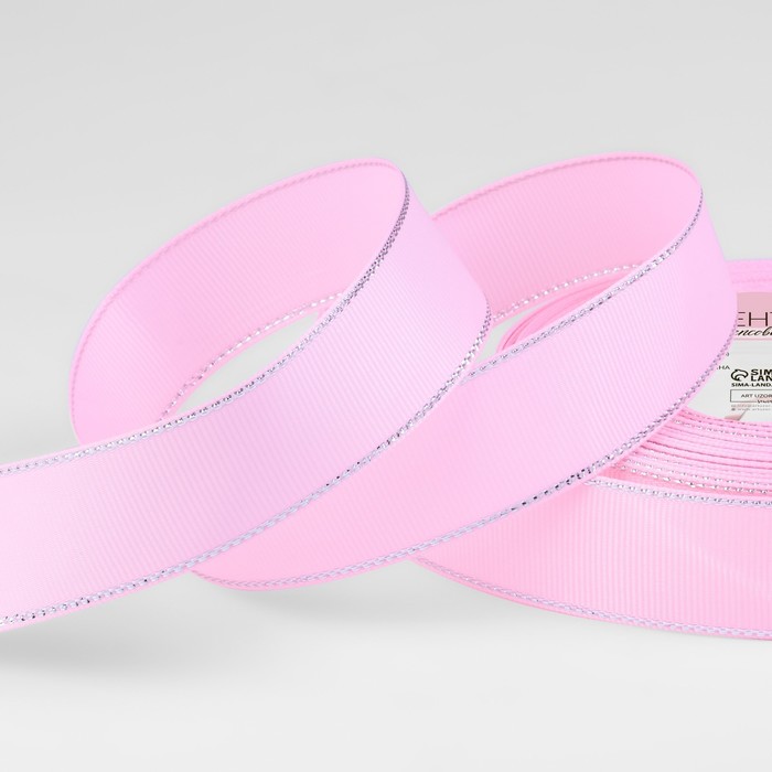 Лента репсовая, с серебряным люрексом, 25 мм, 23±1 м, светло-розовая №004