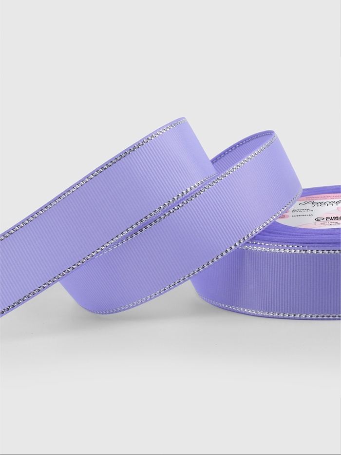 Лента репсовая, с серебряным люрексом, 25 мм, 23±1 м, сиреневая №004