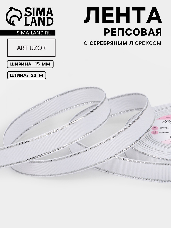 Лента репсовая, с серебряным люрексом, 15 мм, 23±1 м, белая №001