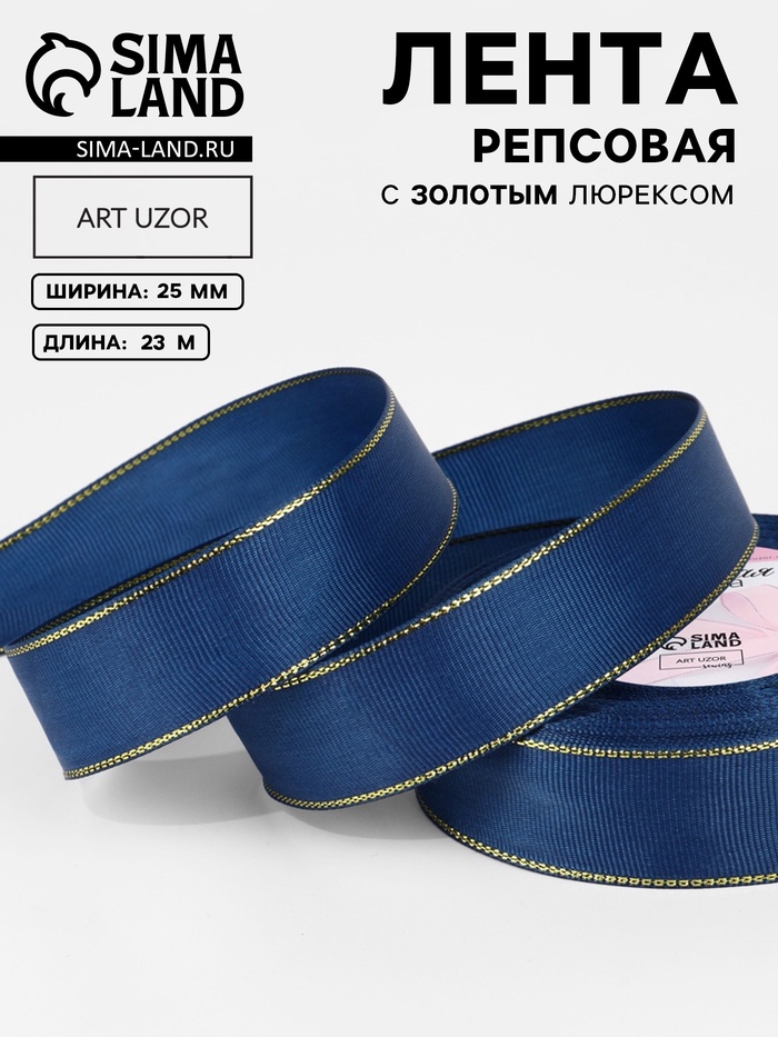 Лента репсовая, с золотым люрексом, 25 мм, 23±1 м, тёмно-синяя №038
