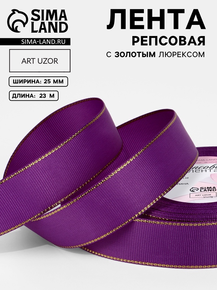Лента репсовая, с золотым люрексом, 25 мм, 23±1 м, фиолетовая №046
