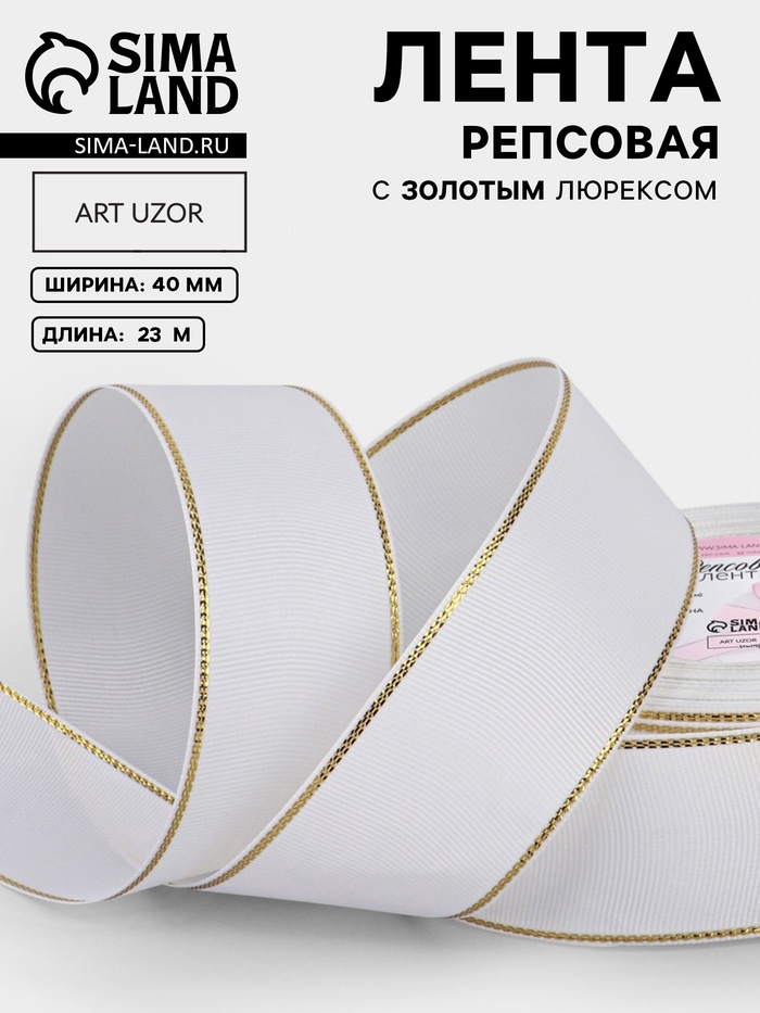 Лента репсовая, с золотым люрексом, 40 мм, 23±1 м, белая №001