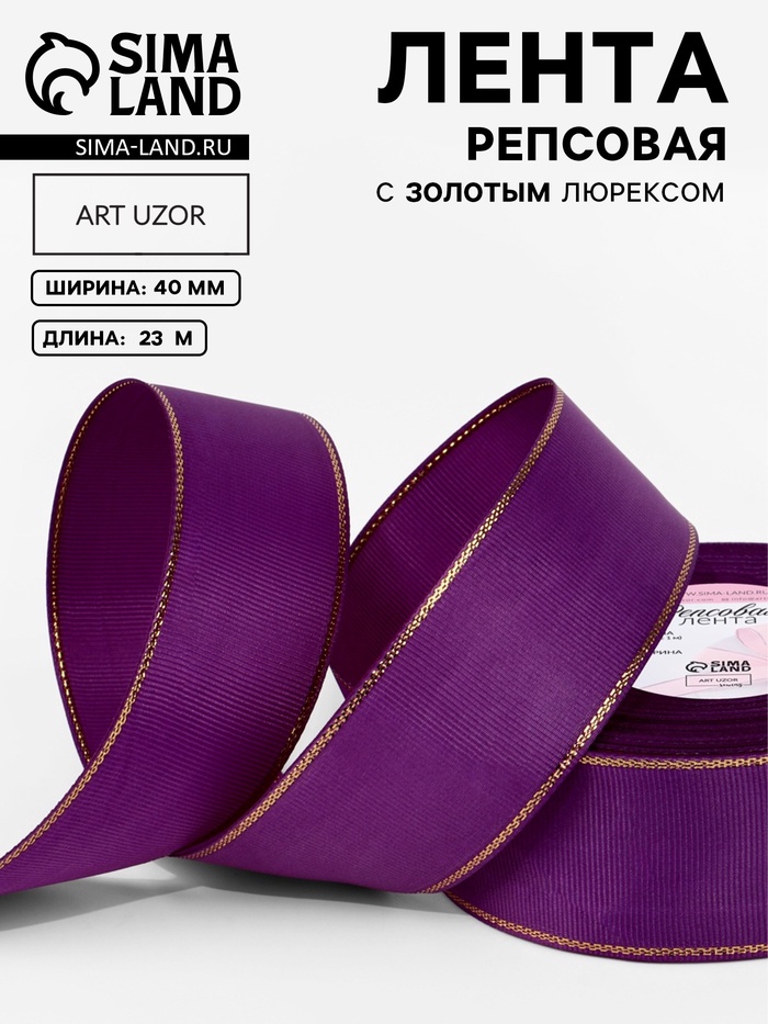Лента репсовая, с золотым люрексом, 40 мм, 23±1 м, фиолетовая №046