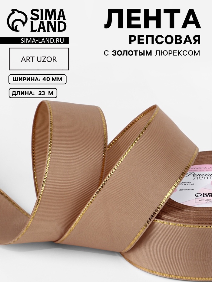 Лента репсовая, с золотым люрексом, 40 мм, 23±1 м, бежевая №173