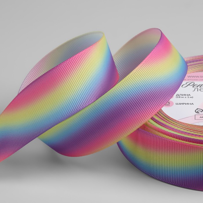 Лента репсовая «Радуга», 25 мм, 18±1 м, разноцветная