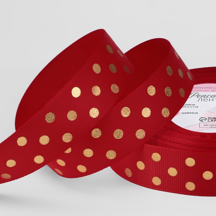 Лента репсовая с тиснением «Горох», 25 мм, 23±1 м, красная №026