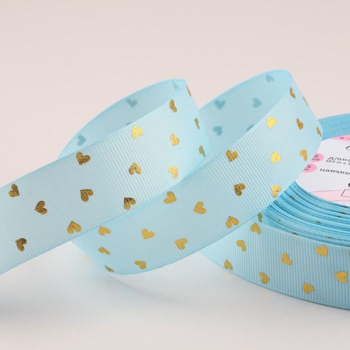 Лента репсовая с тиснением «Сердечки», 25 мм, 23±1 м, голубая №011