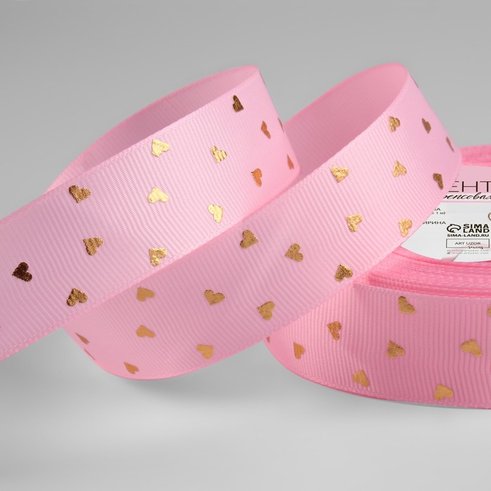 Лента репсовая с тиснением «Сердечки», 25 мм, 23±1 м, розовая №004