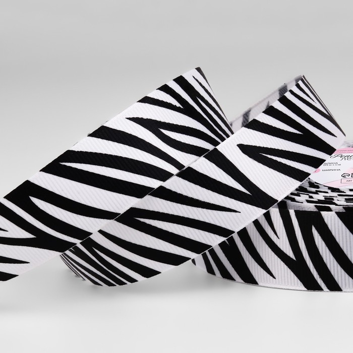Лента репсовая «Зебра», 25 мм, 23±1 м, белая, чёрная