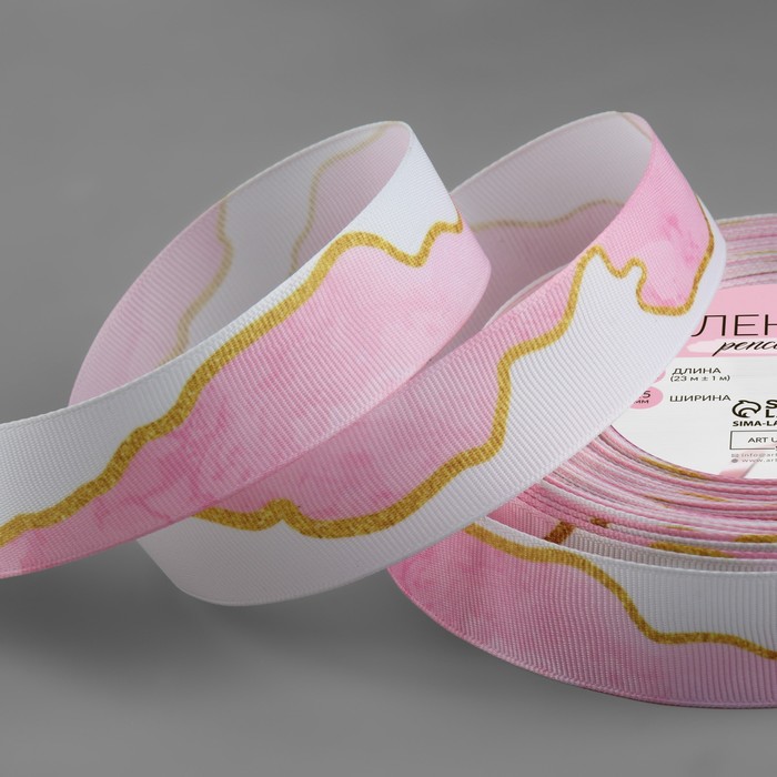 Лента репсовая «Мрамор», 25 мм, 23±1 м, белая, розовая