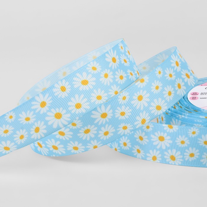 Лента репсовая «Весёлые ромашки», 25 мм, 23±1 м, голубая