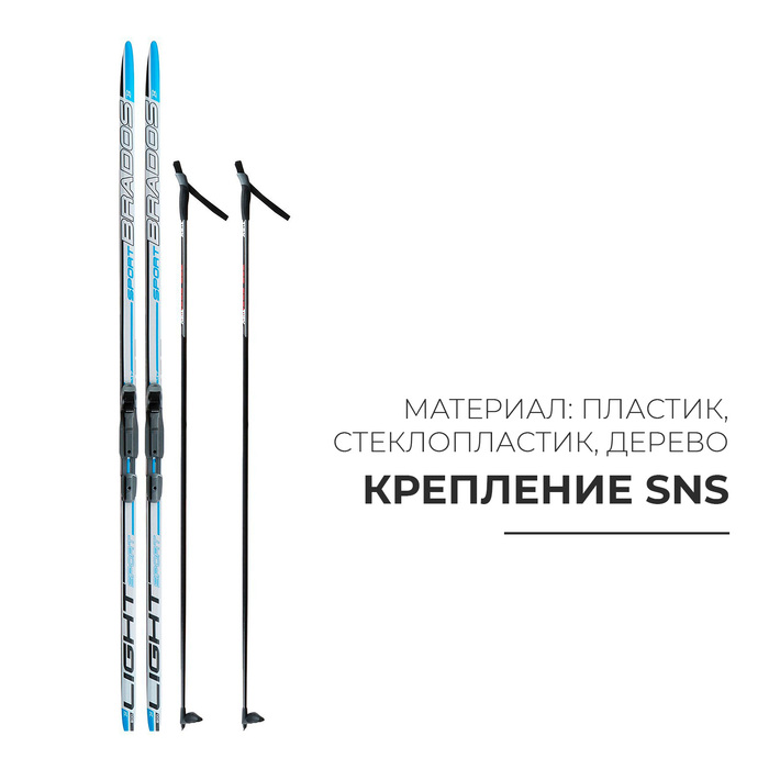 Комплект лыжный: пластиковые лыжи 170 см без насечек, стеклопластиковые палки 130 см, крепления SNS, цвета МИКС