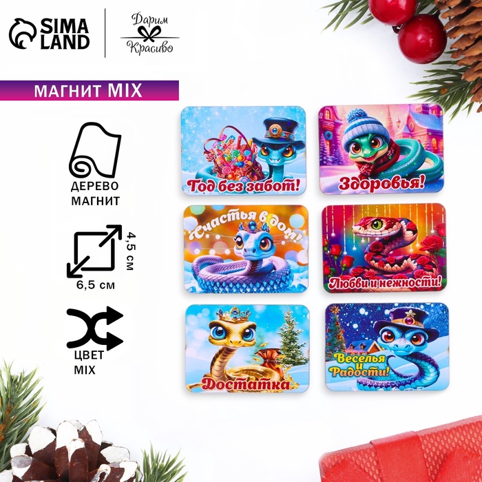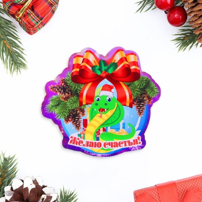 Магнит на холодильник «Змея новогодняя. Желаю счастья!»