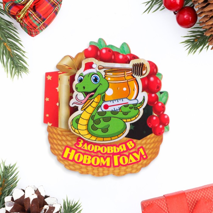 Магнит на холодильник «Змея. Здоровья в Новом Году!», 8×7 см
