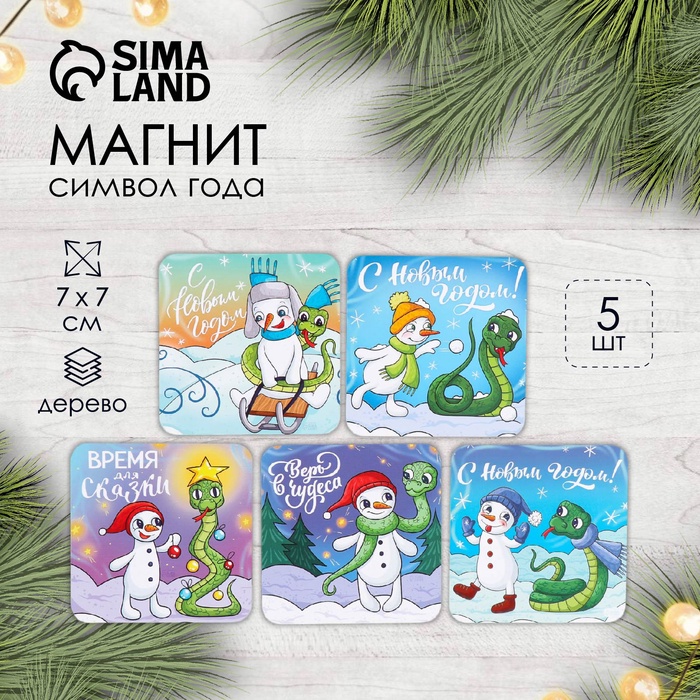 Магнит на холодильник «Змейки со снеговиками», дерево, 7×7 см, 5 видов, МИКС