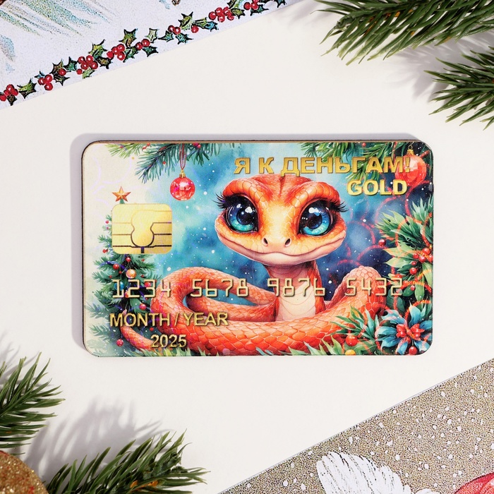 Магнит на холодильник «Кредитка. Змея новогодняя. Я к деньгам», золото
