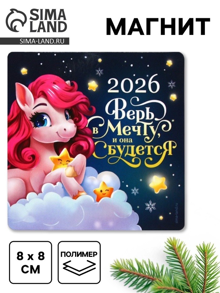 Магнит новогодний на холодильник «Верь в мечту», 8×8 см