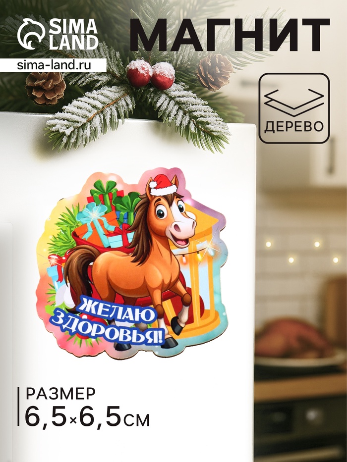 Магнит на холодильник «Лошадка. Желаю здоровья», 6.5×6.5 см
