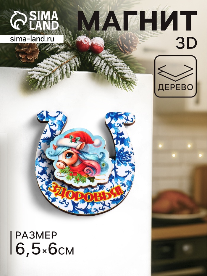 Магнит на холодильник 3D «Конь новогодний. Здоровья», 6×6.5 см