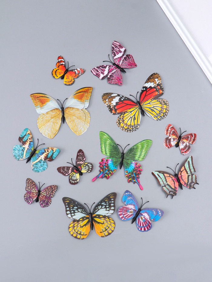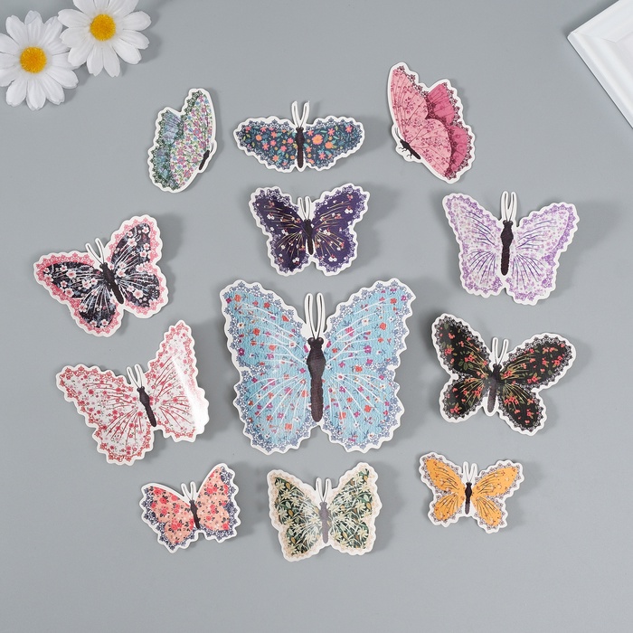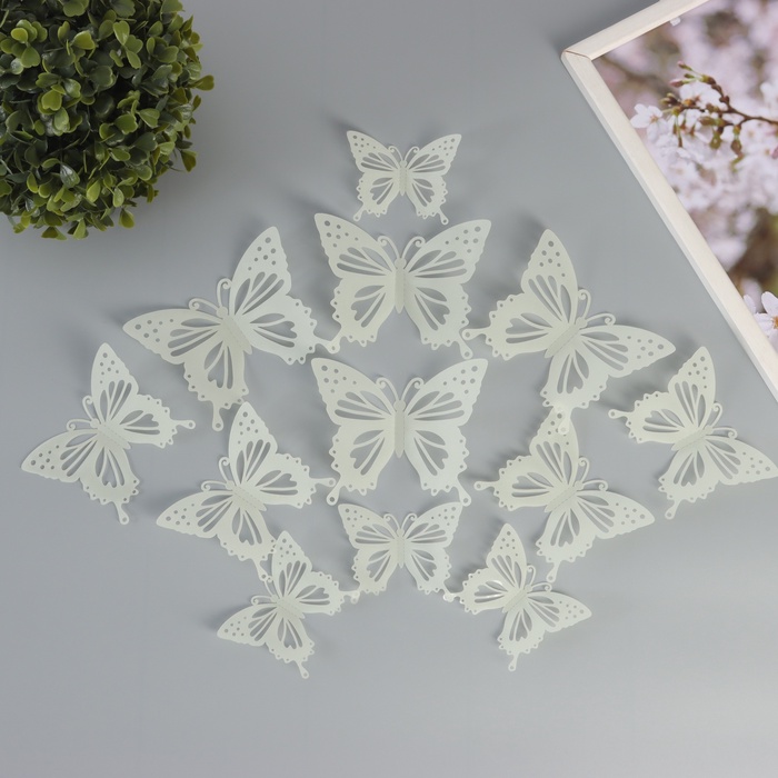 Магнит пластик "Бабочки светящиеся с вырезными узорами" набор 12 шт 8; 10; 12 см