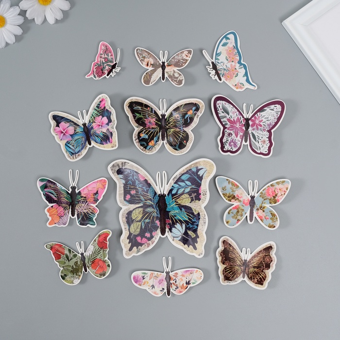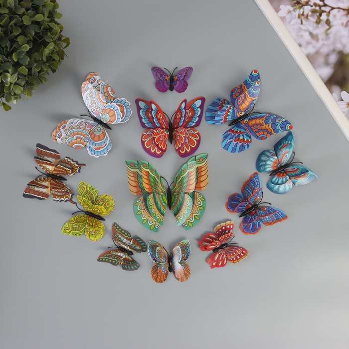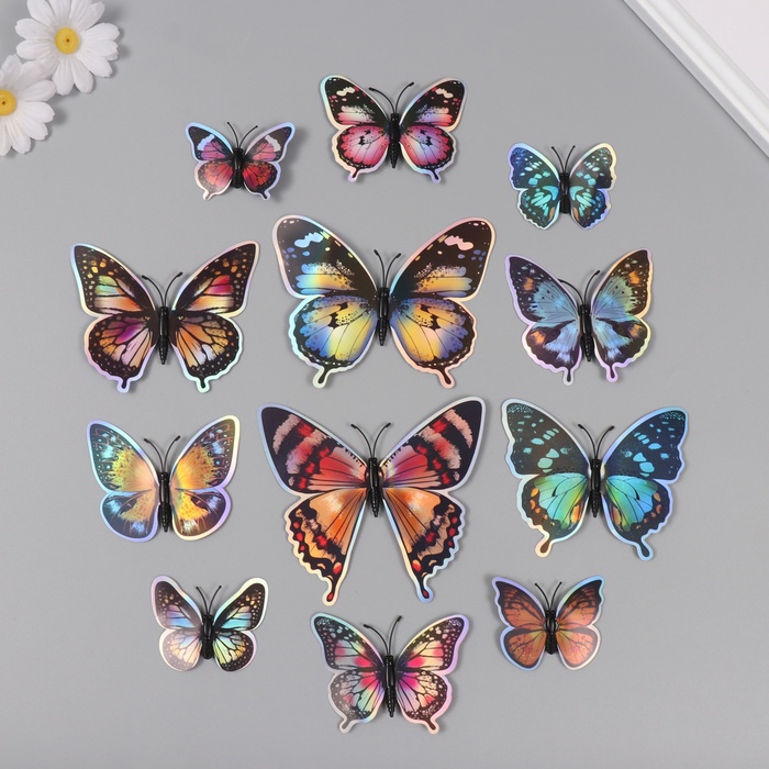 Набор магнитов на холодильник пластик «Бабочки градиентные 2D», 12 шт.