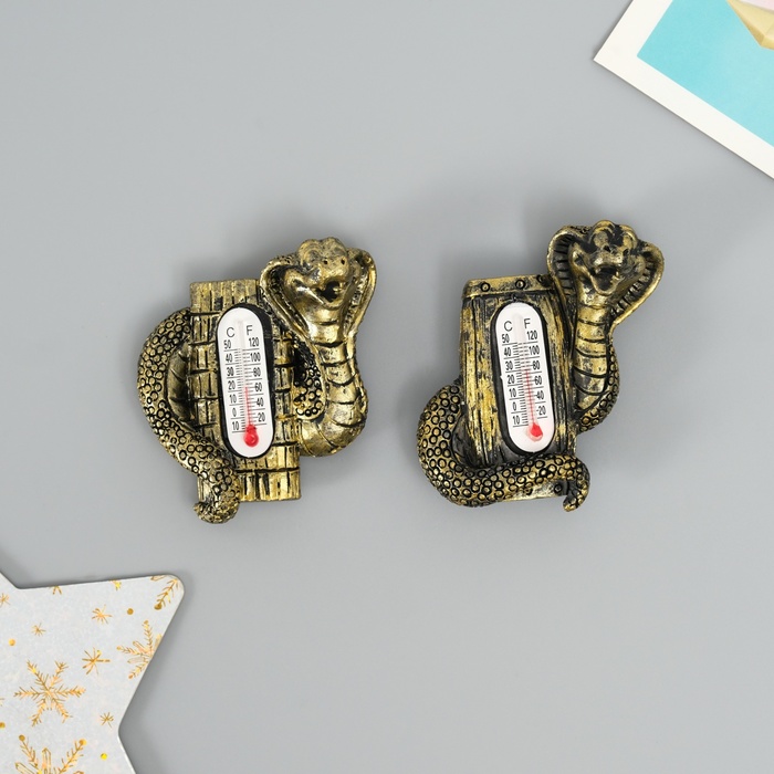 Магнит полистоун "Кобра с термометром" бронза МИКС 4,5х1,5х6 см