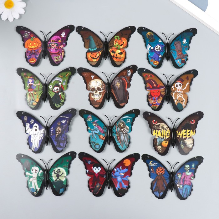 Магнит пластик "Бабочки. Хэллоуин" набор 12 шт 10 см