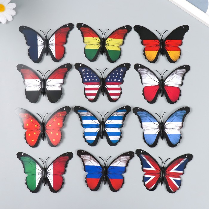Магнит пластик "Бабочки. Флаг" набор 12 шт 10 см