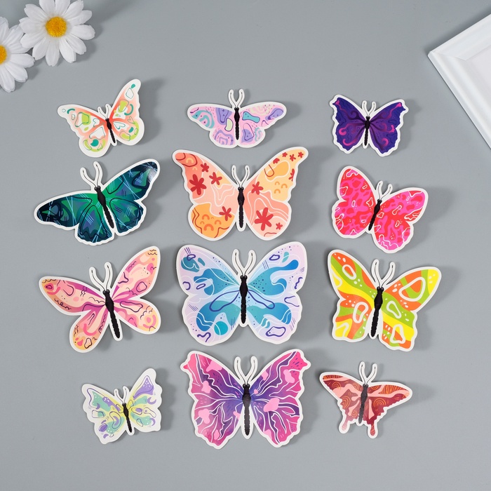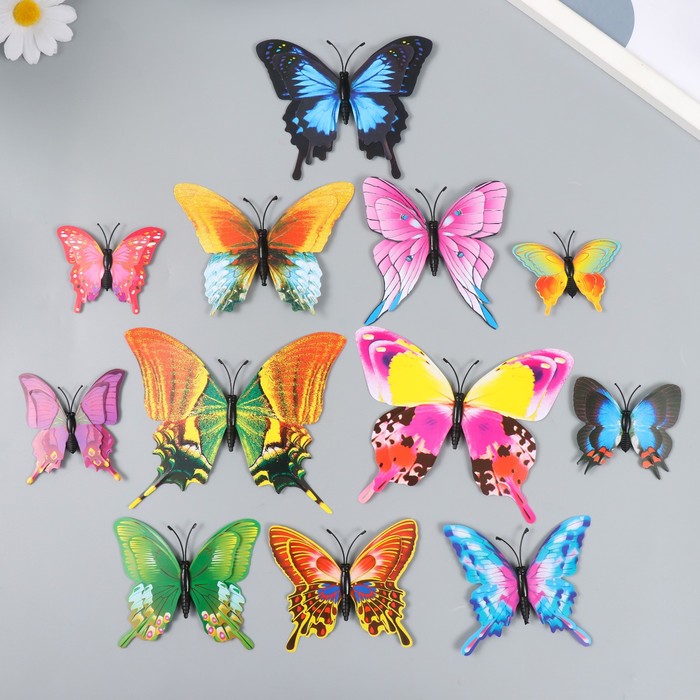 Магнит пластик "Бабочки лета" набор 12 шт h=4,4,5,5,6,8,9,5,13,5,14,5 см